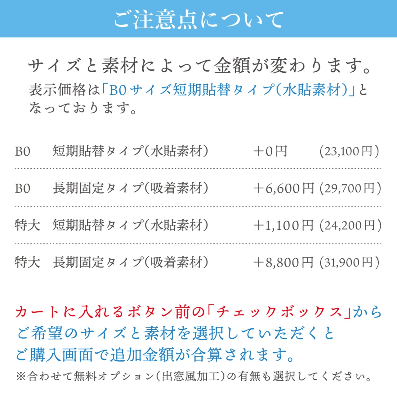 ※サイズと素材によって金額が変わります。(表示価格はB0サイズ短期貼替タイプ(水貼素材))