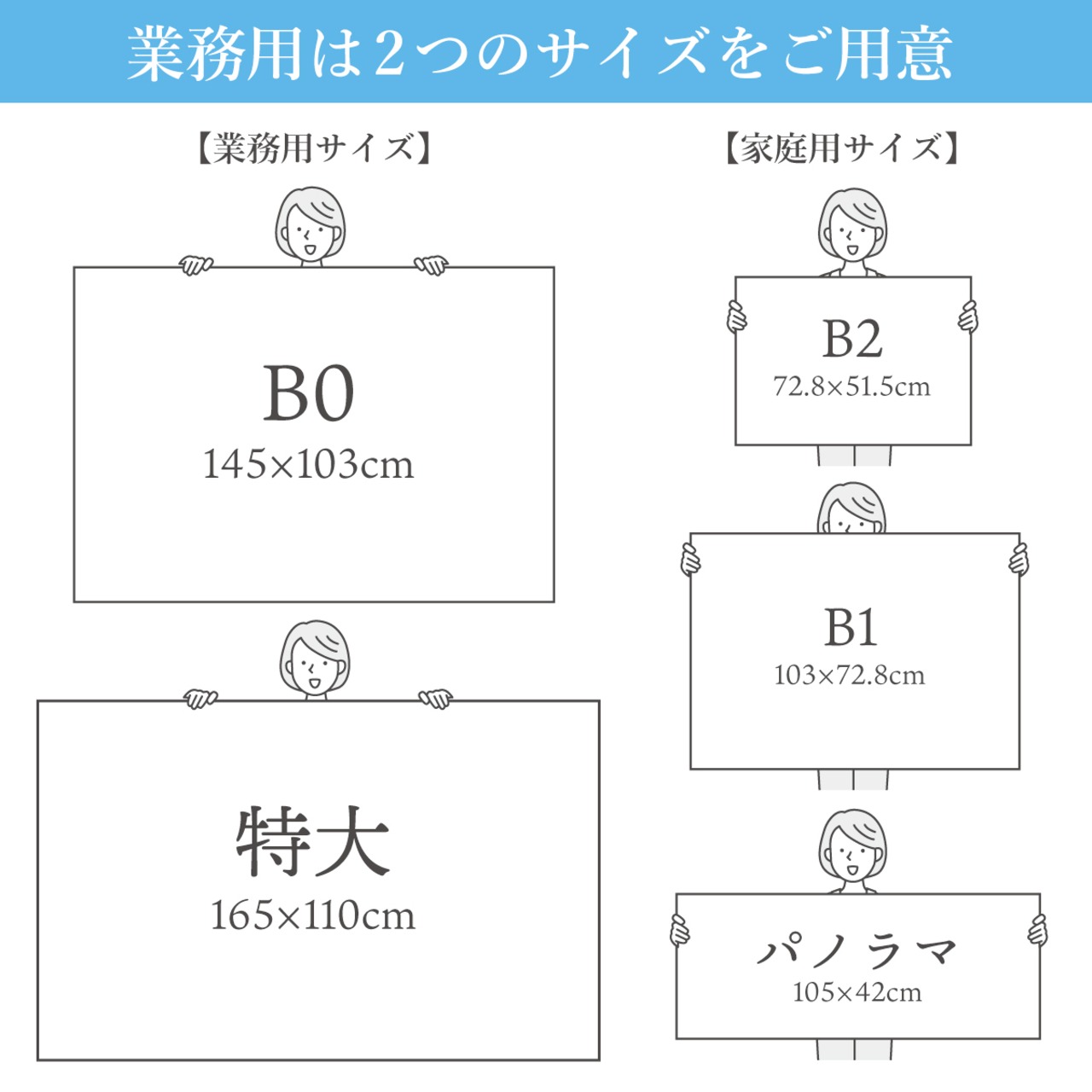 B0(145.6×103cm)と特大(165×110cm)の2種類のサイズをご用意。