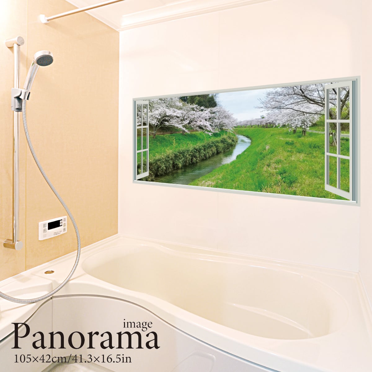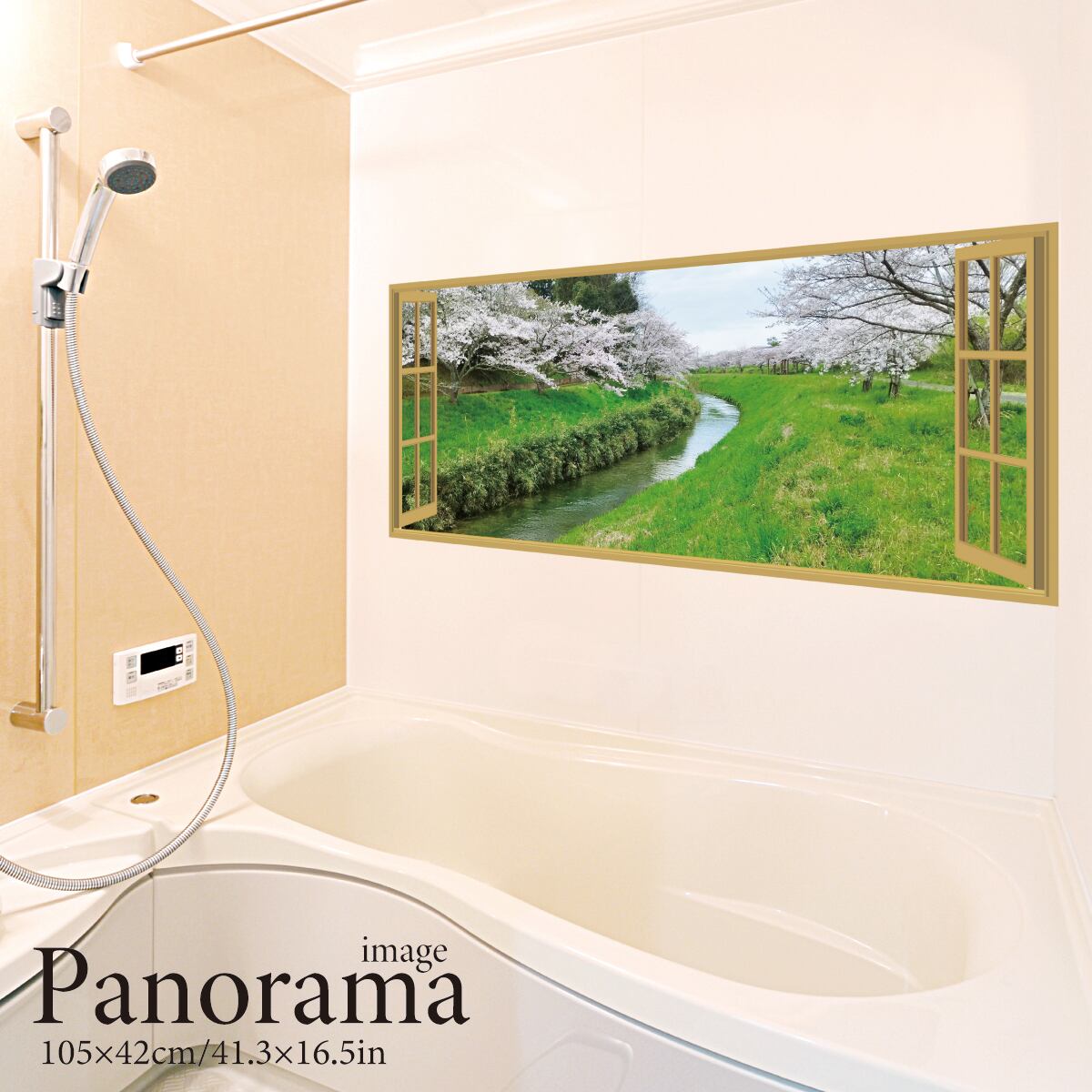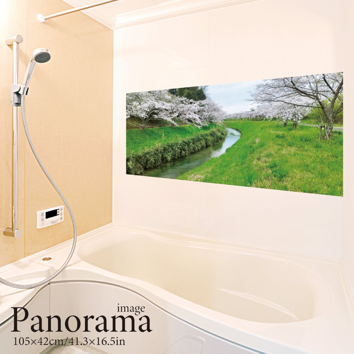 河川敷の桜(パノラマ) お風呂ポスター 防水ポスター