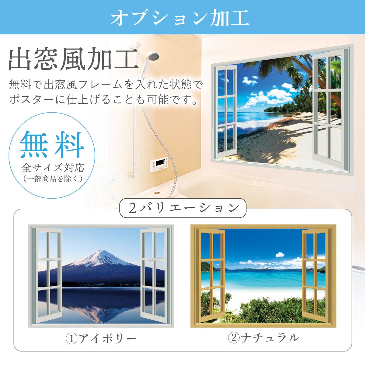 無料で出窓風フレームを入れた状態でポスターに仕上げることも可能です。