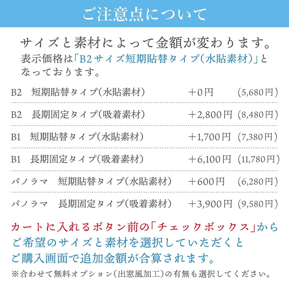●付属品(短期貼替タイプのみ):両面シール 1セット(B2 8枚、B1・パノラマ 12枚、アクリル系粘着材)