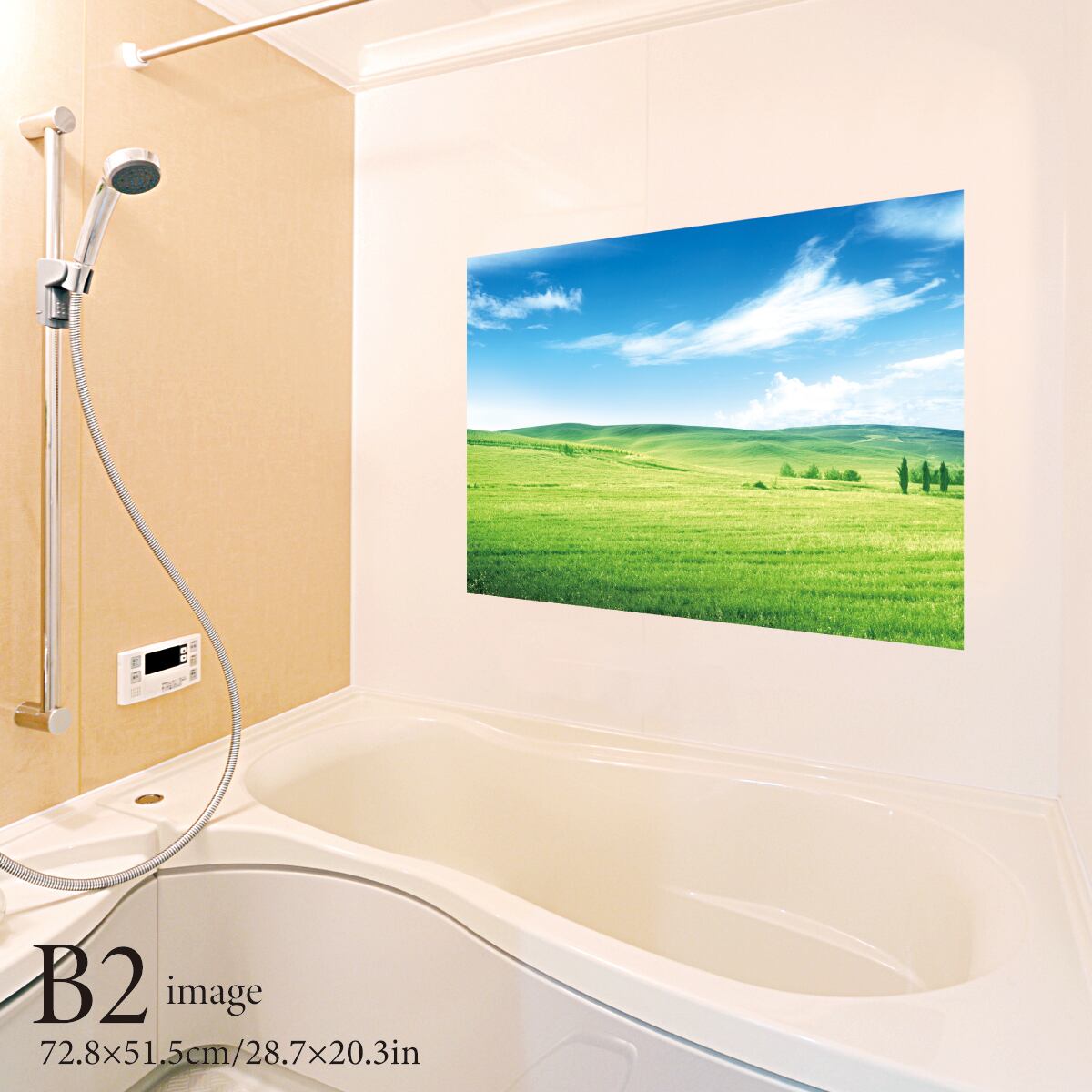 水のみで壁面に簡単に設置出来る、お風呂ポスターのスタンダード素材。剥がれても何度も貼直し可能。定期的にポスターを貼替えたい方や、なるべく安価に導入したい方にオススメ。